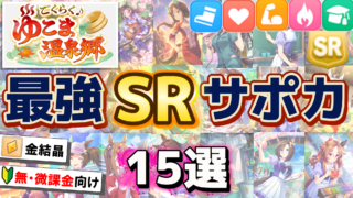 ウマ娘 【ウマ娘】ゆこま温泉郷シナリオで使えるSRサポカランキング 今回はゆこま温泉郷シナリオで使えるSRサポカをランキング形式で各種別ごとに3枚紹介します また今回の内容は下記の動画を参考に制作しているので動画で見たい方はこちらをご覧ください 注意点とデータの見方 まずはこの動画をご覧になるにあたっての注... 2026.01.02 ウマ娘サポートカードゆこま温泉郷